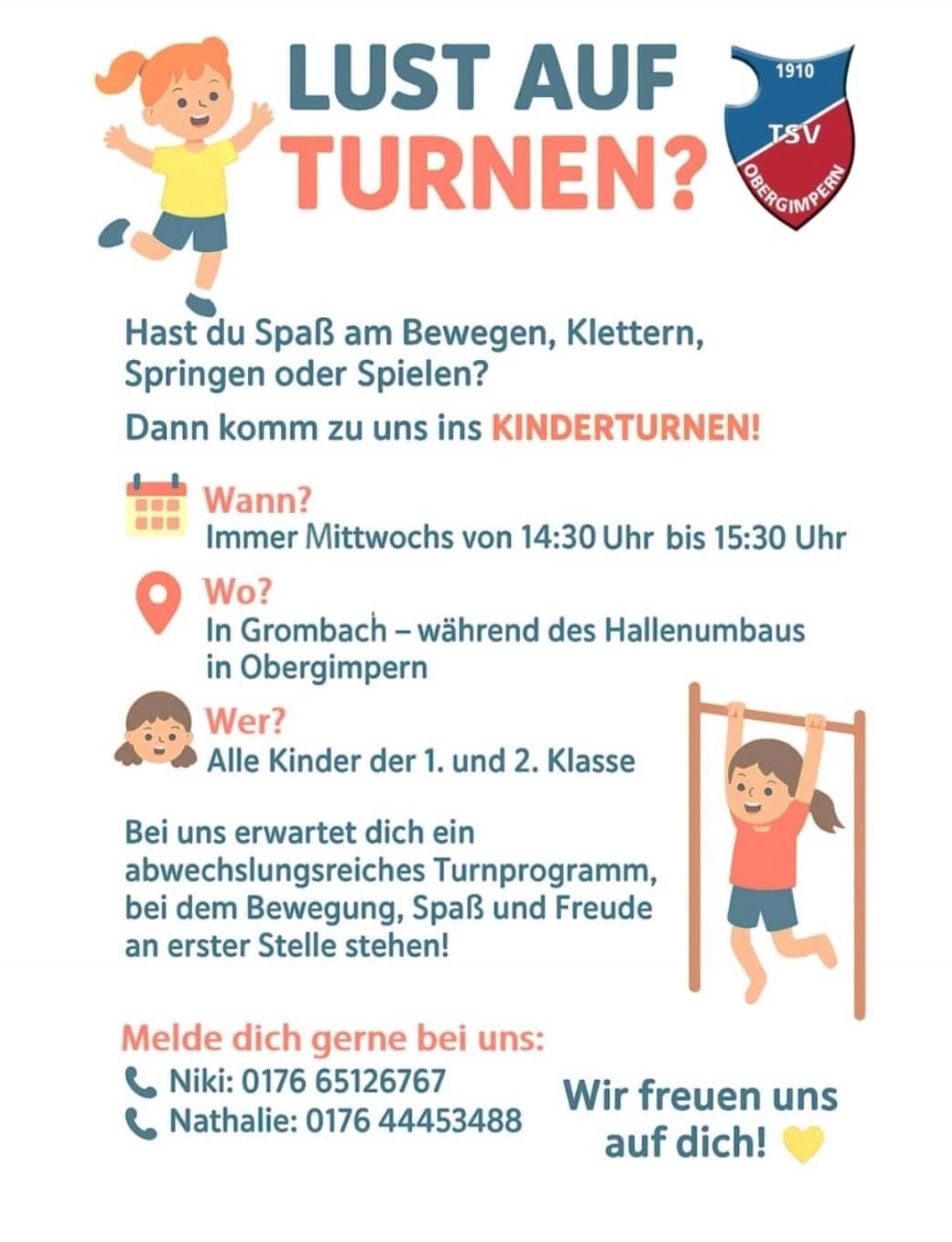 Lust auf Turnen? - Dann kommt zum Kinderturnen beim TSV Obergimpern!